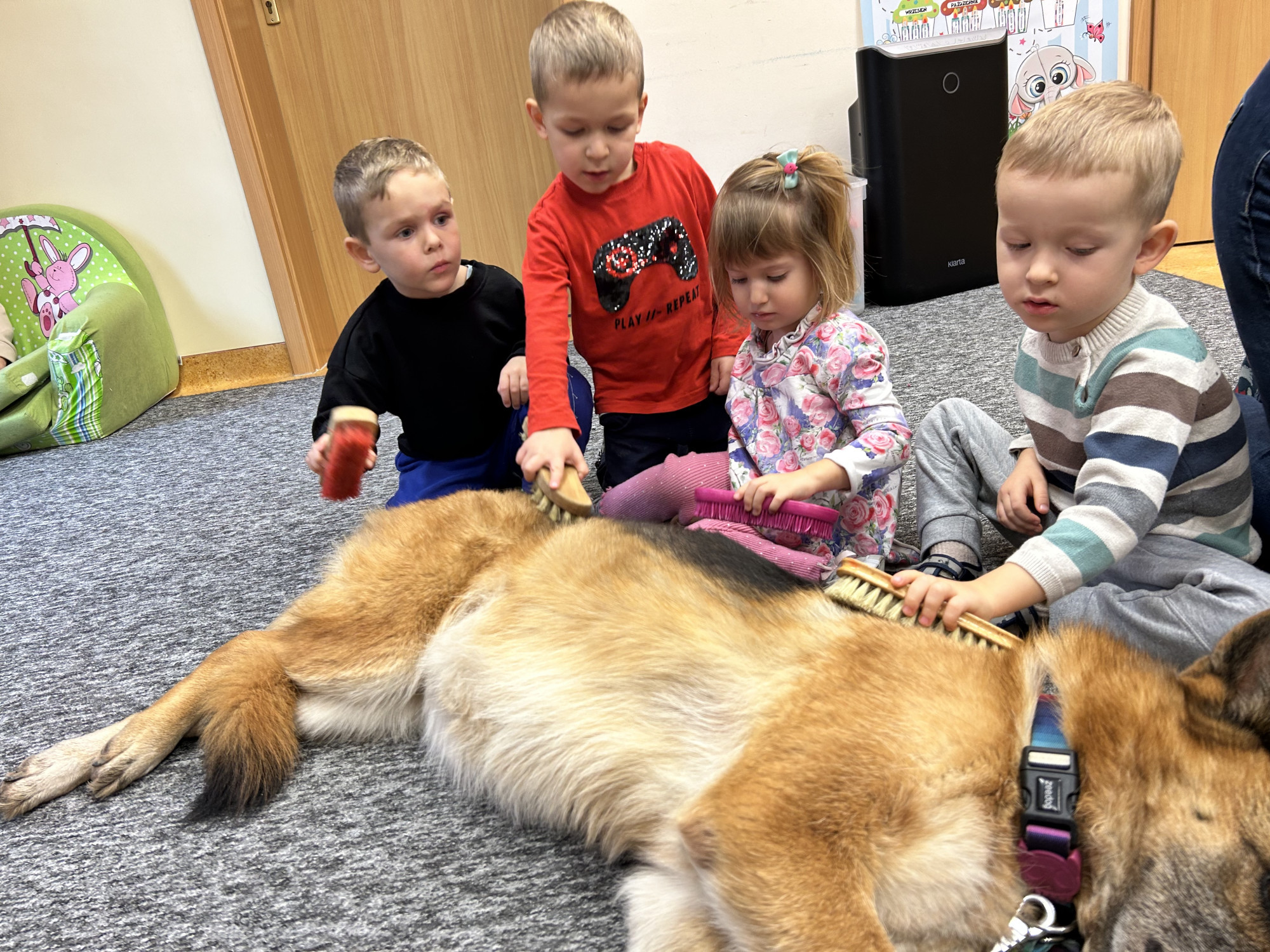 Listopadowe zajęcia z dogoterapii. Zajęcia finansowane z projektu unijnego.